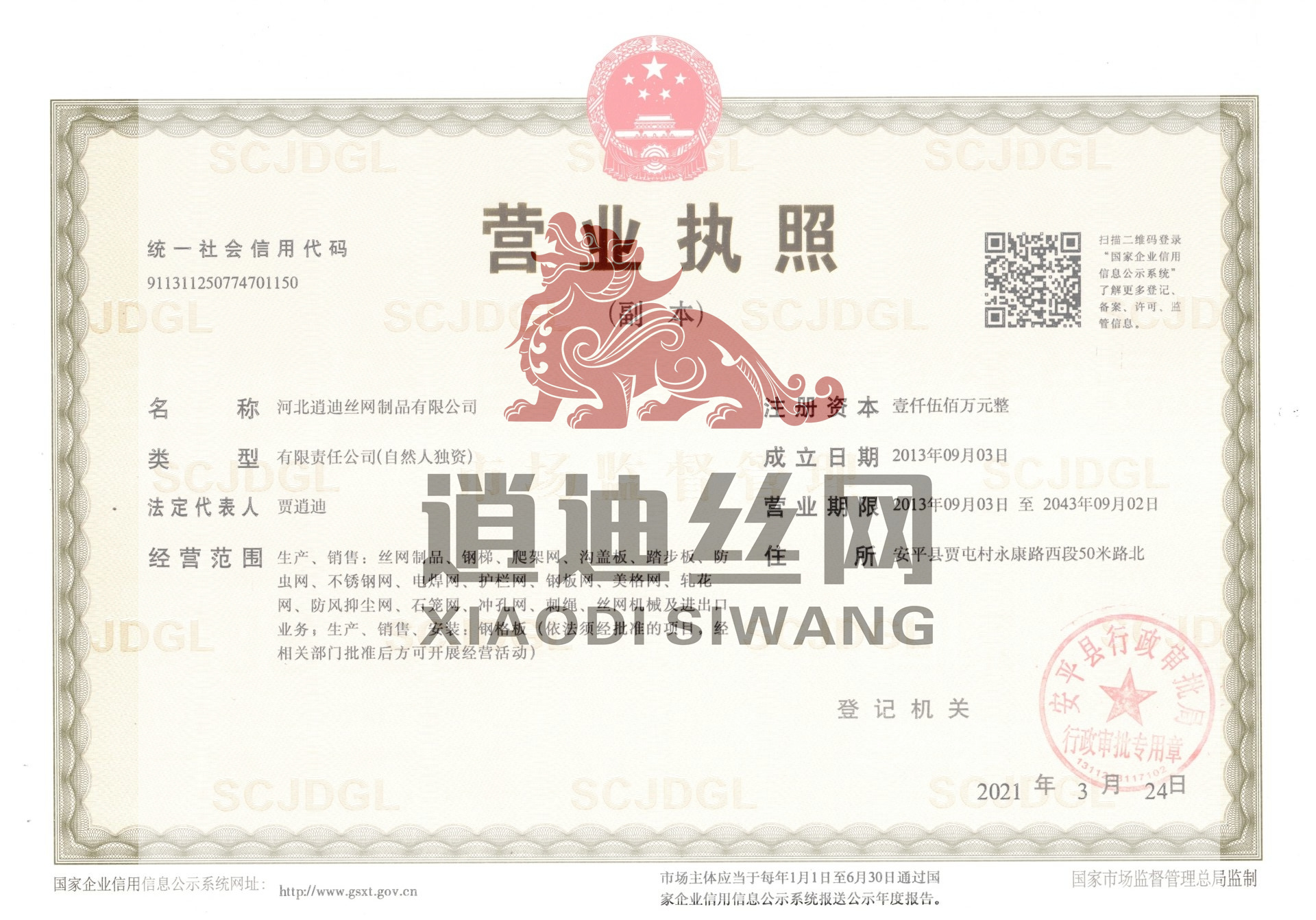 河北逍迪絲網(wǎng)制品有限公司誠信天下,誠信是我們公司一個(gè)原則問題不可撼動(dòng)的,以心中有誠信的思想結(jié)交五湖四海的朋友,能達(dá)到雙贏是最好的,我們堅(jiān)信朋友多了路好走,我們公司都是老朋友多,我們一直是這樣做的。河北逍迪絲網(wǎng)制品有限公司成立于2013年注冊(cè)資本壹仟伍佰萬整,主要生產(chǎn)沖孔網(wǎng),鋼格板,金屬防蟲網(wǎng),如實(shí)的實(shí)體廠家,是一家-研發(fā)-銷售-生產(chǎn)-安裝-售后一條龍公司,2019年通過了ISO 9001認(rèn)證管理體系符合GB/T 19001-2016/ISO 9001:2015標(biāo)準(zhǔn),同時(shí)通過了SGS認(rèn)證,擁有商標(biāo)版權(quán)2品牌,擁有一個(gè)著作版權(quán),河北逍迪絲網(wǎng)制品有限公司位于中國有名的(絲網(wǎng)之鄉(xiāng))安平縣,于天津,北京,雄安,石家莊相鄰,交通非常發(fā)達(dá),出口可以選擇天津港口非常近每天都有接貨送貨往返車輛,空運(yùn)可以選擇石家莊正定機(jī)場(chǎng),附近也有鐵路運(yùn)輸,當(dāng)?shù)剡€有兩個(gè)生態(tài)物流園區(qū)發(fā)往全國各地,我們沖孔網(wǎng)工廠生產(chǎn)設(shè)備有:普通沖壓機(jī),高速?zèng)_壓機(jī),自主研發(fā)小微孔沖壓機(jī),龍門沖,磚塔沖孔,重型沖孔機(jī),萬瓦級(jí)別激光切割機(jī),3000W激光切割機(jī),焊接設(shè)備,折彎機(jī),校平機(jī),剪板機(jī),精密校平機(jī),(對(duì)板面平整度要求苛刻的客戶群體0.5-0.2誤差)我們公司銷售市場(chǎng)沒有局限性國內(nèi)國外都供應(yīng),擁有出口權(quán)...